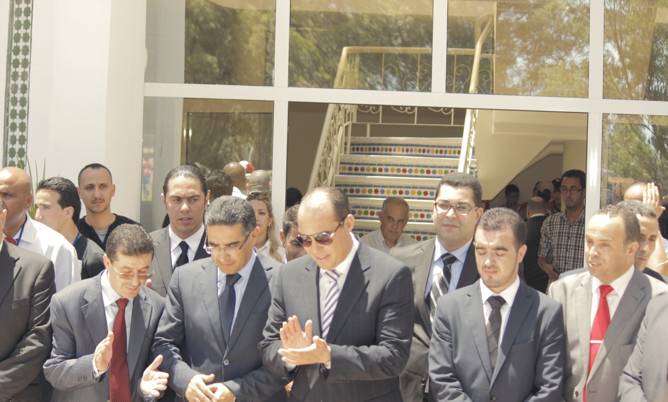 السيد الوزير الذي كان مصحوبا بوالي مدينة تطوان و مدير شركة سونارجيس المكلفة بتسيير الملاعب ، وجد في استقباله رئيس النادي الحاج عبد المالك أبرون و كل الطاقم الإداري إضافىة إلى ممثلين عن الجماعة الحضرية .